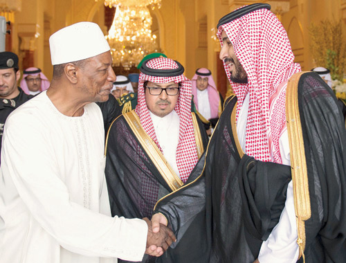 حضر اللقاء معالي وزير الدولة عضو مجلس الوزراء الدكتور مساعد بن محمد العيبان - الوزير المرافق -، ومعالي المستشار بالديوان الملكي الأستاذ أحمد الخطيب، ومعالي المستشار في الديوان الملكي المشرف العام على مكتب سمو وزير الدفاع الأستاذ فهد العيسى، ومعالي نائب الرئيس والعضو المنتدب لصندوق التنمية السعودي المهندس يوسف البسام، وعدد من المسؤولين، والوفد الرسمي المرافق لرئيس جمهورية غينيا.
