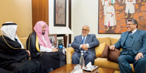 استقبل معالي رئيس الحكومة المغربية السيد/ عبدالإله بن كيران بمقر رئاسة الحكومة بالرباط معالي وزير العدل رئيس المجلس الأعلى للقضاء الشيخ الدكتور وليد بن محمد الصمعاني الذي يقوم بزيارة رسمية للمغرب تلبية لدعوة من معالي وزير العدل والحريات بالمملكة المغربية الشقيقة على رأس وفد قضائي رفيع المستوى.