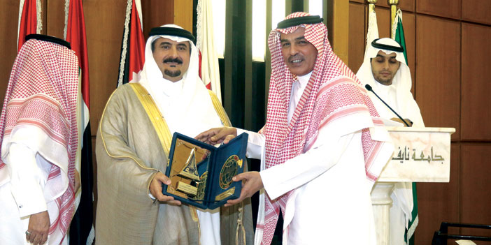 وأضاف معاليه أن الجامعة وبتوجيه كريم من سمو رئيس المجلس الأعلى للجامعة تقوم بترجمة إصداراتها العلمية إلى اللغات العالمية لاسميا في مجالات مكافحة الجرائم المستحدثة ومكافحة الإرهاب وحقوق الإنسان وغيرها، وتقوم بإهداء هذه الإصدارات بشكل منتظم إلى مراكز البحوث ومكتبات الجامعات والمؤسسات الثقافية والأمنية والعسكرية ذات العلاقة حول العالم، وقد اعتمدت بعض الجامعات العالمية بعضاً من هذه الإصدارات العلمية ضمن مناهجها الدراسية. وهي خطوة تؤكد المكانة العلمية المتميزة التي وصلت إليها جامعة نايف العربية للعلوم الأمنية، ويعد ذلك تقديراً أكاديمياً لهذا الصرح العربي الذي أصبح يتبوأ مكانة رائدة وفريدة على المستوى الإقليمي والدولي.