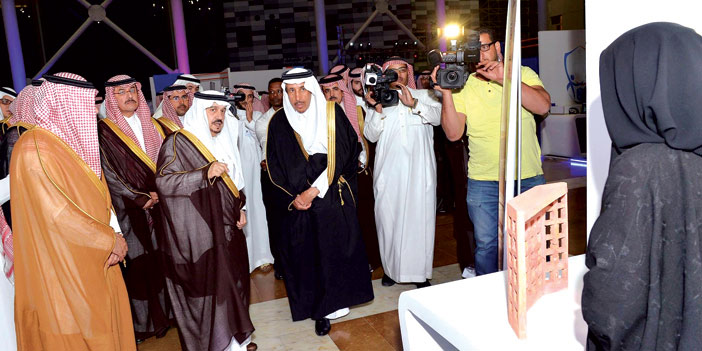 إثر ذلك افتتح الأمير فيصل بن بندر المعرض المصاحب وتجول في أرجاء المعرض واطلع فيها على ابتكارات واختراعات المشاركات. كما تفقد سموه عقب الحفل مرافق الجامعة ومباني الكليات مستمعاً إلى شرح من معالي مدير جامعة الملك سعود عن أبرز ماتقدمه المدينة من وسائل تعليمية بأحدث التقنيات والبيئة العلمية التي تعيشها الطالبة في خصوصية وراحة.