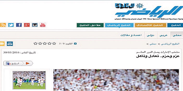 في تغطيتها لمواجهة الأخضر السعودي والأبيض الإماراتي على إكمال الأخير لعقد المتأهلين إلى الدور الحاسم الثاني من تصفيات مونديال 2018 المقرّرة في روسيا.