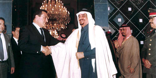 شهدت العلاقة بين السعودية و مصر تطورًا قويًا منذ توقيع معاهدة الصداقة بين البلدين عام 1926م . فقد أيدت المملكة مطالب مصر الوطنية في جلاء القوات البريطانية عن الأراضي المصرية ووقفت إلى جانبها في الجامعة العربية والأمم المتحدة وجميع المحافل الدولية ، وفى 27 أكتوبر عام 1955 وقعت اتفاقية دفاع مشترك بين البلدين.