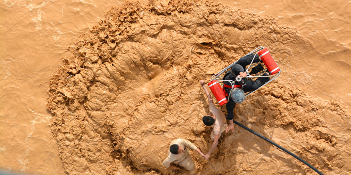 تواصل طائرات القيادة العامة لطيران الأمن بالتعاون مع الدفاع المدني مهام إنقاذ المحتجزين بالسيول التي تشهدها منطقة مكة المكرمة ومحافظة الطائف وما جاورها. وذكرت القيادة العامة امس أن طيران الأمن تمكن من إنقاذ ثلاثة مواطنين ومقيم من الجنسية الهندية بعد أن احتجزوا وجرفتهم السيول في وادي الخرمة بالطائف. وأكدت أن طيران الأمن مازال يواصل طلعاته الجوية لتنفيذ مهام المسح الجوي لمجاري السيول والأودية للاستطلاع على الوضع العام في بعض الاحياء السكنية المتضررة، والقيام بالتدخل الفوري بعمليات الانقاذ متى ما دعت الحاجة لذلك.