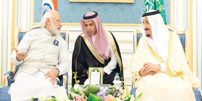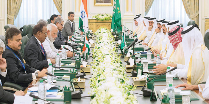 من جانبه أعرب دولة رئيس وزراء الهند عن سعادته بزيارة المملكة ولقائه خادم الحرمين الشريفين، معبراً عن بالغ شكره على حفاوة الاستقبال وكرم الضيافة. وأكد دولته أهمية العلاقات الثنائية بين المملكة والهند، مثنياً على دور خادم الحرمين الشريفين في تنمية العلاقات الثنائية لما فيه صالح البلدين والشعبين الصديقين. وأشار دولة رئيس وزراء الهند إلى حرص بلاده على تطوير العلاقات وتعزيزها مع المملكة في مختلف المجالات لاسيما العمل على مكافحة الإرهاب والتعاون في المجالات الأمنية والدفاعية وزيادة الاستثمارات المتبادلة بين البلدين.