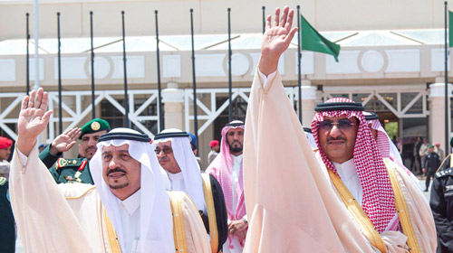وقد غادر في معية خادم الحرمين الشريفين كل من صاحب السمو الأمير خالد بن فهد بن خالد، وصاحب السمو الملكي الأمير منصور بن سعود بن عبدالعزيز، وصاحب السمو الملكي الأمير طلال بن سعود بن عبدالعزيز، وصاحب السمو الملكي الأمير خالد بن بندر بن عبدالعزيز مستشار خادم الحرمين الشريفين، وصاحب السمو الأمير فهد بن عبدالله بن عبدالعزيز بن مساعد، وصاحب السمو الأمير تركي بن عبدالله بن محمد مستشار خادم الحرمين الشريفين، وصاحب السمو الملكي الأمير سطام بن سعود بن عبدالعزيز، وصاحب السمو الملكي الأمير الدكتور حسام بن سعود بن عبدالعزيز، وصاحب السمو الملكي الأمير فيصل بن خالد بن سلطان بن عبدالعزيز المستشار بالديوان الملكي، وصاحب السمو الملكي الأمير منصور بن مقرن بن عبدالعزيز مستشار خادم الحرمين الشريفين، وصاحب السمو الملكي الأمير محمد بن عبدالرحمن بن عبدالعزيز، وصاحب السمو الملكي الأمير سلطان بن فهد بن سلمان بن عبدالعزيز، وصاحب السمو الملكي الأمير عبدالعزيز بن سعود بن نايف بن عبدالعزيز، وصاحب السمو الملكي الأمير عبدالله بن بندر بن عبدالعزيز، وصاحب السمو الملكي الأمير سعود بن سلمان بن عبدالعزيز، وصاحب السمو الملكي الأمير تركي بن سلمان بن عبدالعزيز، وصاحب السمو الملكي الأمير نايف بن سلمان بن عبدالعزيز.