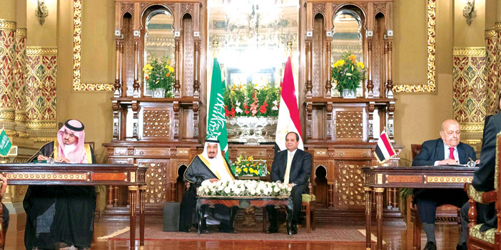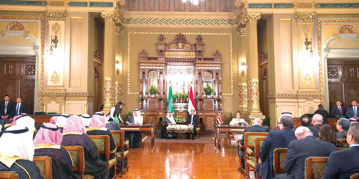 شهد خادم الحرمين الشريفين الملك سلمان بن عبدالعزيز آل سعود وأخوه فخامة الرئيس عبدالفتاح السيسي رئيس جمهورية مصر العربية بقصر عابدين في القاهرة مساء أمس الاول توقيع 21 اتفاقية ومذكرة تفاهم استثمارية بين البلدين في عدد من المجالات وإعلانين لمشروعين تم تأسيسهما وهي كالتالي :