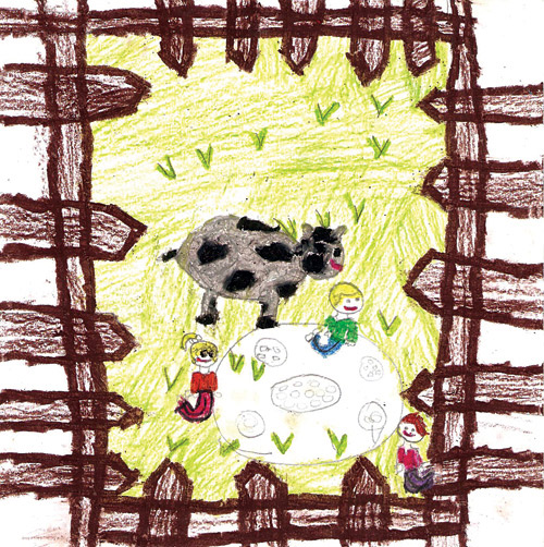 في اليوم التالي أرسلت زوجة الأب أحد أبنائها مع الابنين، وأعطت ابنها طعاماً حسناً أما اليتامى فكان الكوز هو وجبتهم اليومية، وعندما وصلا المرعى قالا لأخيهما: «هل تخبر أمك؟ «فقال: «بماذا» قالا:» أننا نملك طعاماً غير الذي تعطيه لنا أمك؟» فقال: «وما هو؟» قالا: «سترى طعامنا ولكن المهم أن لا تخبر أمك «فوعدهم بذلك، فقالا: «يا بقرة أمنا وأبينا ضعي لنا أرزاً ولحماً»، فوضعت البقرة ما طلب منها فأكلوا حتى شبعوا ولما انتهى النهار، عادوا إلى البيت، فسألت الأم ابنها: «هل يأكل إخوتك شيئاً» فقال:» لا.. لا يأكلون إلا كوز الذرة.» إلا أنها لم تصدق.