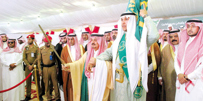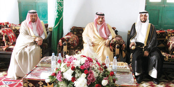 وكان في استقبال سموه لدى وصوله إلى مدينة السيح شبيلي بن مجدوع آل مجدوع محافظ محافظة الخرج ورؤساء المراكز وشيوخ القبائل وعدد من مديري الإدارات الحكومية من مدنيين وعسكريين في مقر الحفل وتشرفوا بالسلام عليه، حيثُ استقبل بالعرضة النجدية ترحيباً بقدومه ثم في منصة الحفل أخذ مكانه و بدأ الحفل بآيات من الذكر الحكيم.