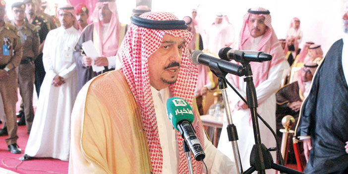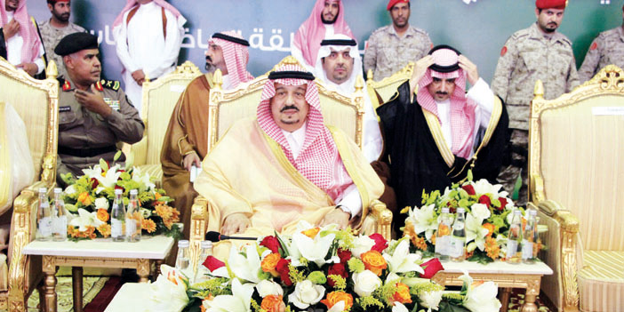وأشاد المحافظ بما تشهده المحافظة من نمو وازدهار في عهد خادم الحرمين الشريفين الملك سلمان بن عبدالعزيز آل سعود وسمو ولي عهده وسمو ولي ولي العهد - حفظهم الله – . ثم تلا ذلك تكريم سموه من قبل محافظ الخرج بمجسم لقصر مشرف قصر الملك عبدالعزيز طيب الله ثراه ثم تكريم أبناء و بنات الشهداء و تكريم الفائزين في مسابقة كلنا شهداء الوطن التي نظمتها اللجنة الثقافية في نادي دبي.
