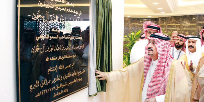 ثم تفضل سموه بتدشين برج الخرج بعد تهيئته الجديدة إذ يضم مطعماً دواراً على علو 150 متر يشرف على مدينة السيح ويضم العديد من المرافق الخدمية فئة خمسة نجوم. كما يضم البرج في مدخله بهو كبير و صالة اجتماعات وضيافات خاصة تخدم المحافظة ورجالاتها في اجتماعاتهم وضيافاتهم الخاصة وواجهة فاخرة للمحافظة.