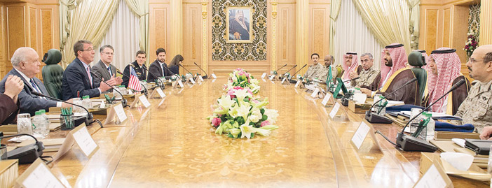 عقد صاحب السمو الملكي الأمير محمد بن سلمان بن عبدالعزيز ولي ولي العهد النائب الثاني لرئيس مجلس الوزراء وزير الدفاع، اجتماعاً أمس مع معالي وزير الدفاع الأمريكي أشتون كارتر، وذلك بقصر اليمامة بالرياض.