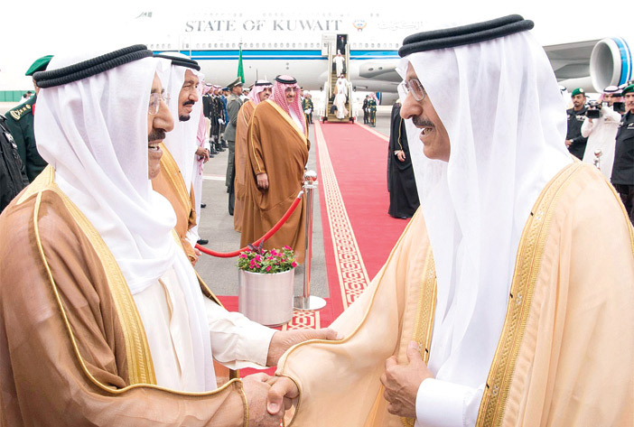 بعد ذلك صافح صاحب السمو الشيخ صباح الأحمد الجابر الصباح مستقبليه صاحب السمو الملكي الأمير خالد بن بندر بن عبدالعزيز مستشار خادم الحرمين الشريفين، وصاحب السمو الملكي الأمير الدكتور منصور بن متعب بن عبدالعزيز وزير الدولة عضو مجلس الوزراء مستشار خادم الحرمين الشريفين، وصاحب السمو الملكي الأمير متعب بن عبدالله بن عبدالعزيز وزير الحرس الوطني، وصاحب السمو الملكي الأمير عبدالعزيز بن سلمان بن عبدالعزيز نائب وزير البترول والثروة المعدنية، وصاحب السمو الملكي الأمير عبدالله بن مساعد بن عبدالعزيز الرئيس العام لرعاية الشباب، وصاحب السمو الملكي الأمير منصور بن مقرن بن عبدالعزيز مستشار خادم الحرمين الشريفين، ومعالي رئيس مجلس الشورى، وأصحاب المعالي الوزراء، وقادة القطاعات العسكرية.
