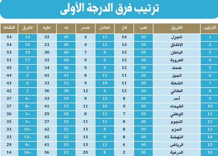 حبست الجولة الأخيرة في دوري الدرجة الأولى الأنفاس وصنعت الإثارة ولفتت الأنظار بمتغيراتها الكبيرة التي حدثت وسط ترقب شديد من المتابعين كافة، ولم تهدأ خلالها الأمور على حال فتبدلت النتائج بالثواني والدقائق وتغيرت الأحوال وتنقلت الفرحة من مدينة إلى أخرى حتى استقر الحال وانطلقت الأفراح من مدينتي المجمعة والدمام بإعلان صعود المجزل والاتفاق وحصول الفريق المجزلاوي على لقب دوري الدرجة الأولى في مفاجأة مدوية للغاية ولكنها غير مستغربة من أبناء تمير لتميزهم هذا العام.