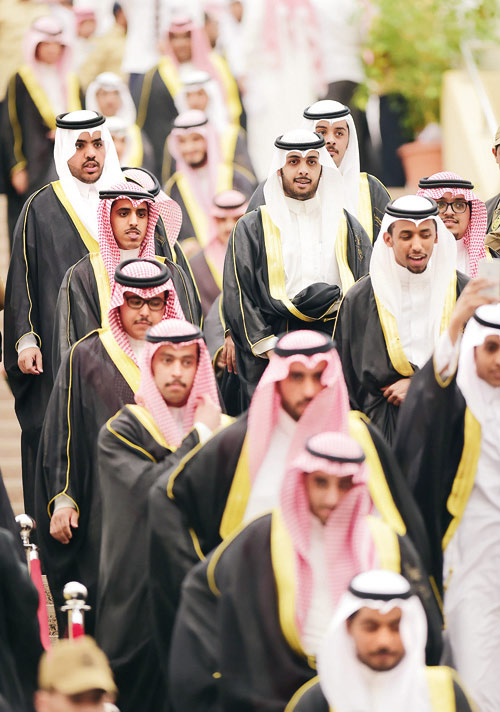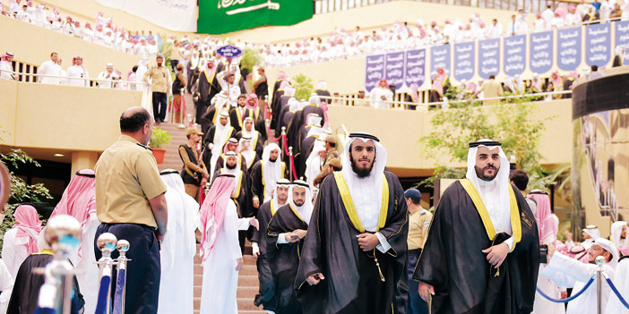 وكان حفل التخرج قد انطلق بالسلام السعودي الملكي ثم افتتح البرنامج الخطابي بآيات من الذكر الحكيم ثم مسيرة الخريجين الذين مثلوا جميع كليات الجامعات.