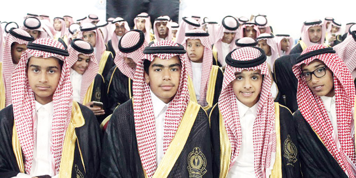 حيث بدئ الحفل بمسيرة الطلاب الخريجين تلاها آيات من القرآن الكريم ثم كلمة الطلاب الخريجين قدمها الطالب عبدالله بن تركي الجميعة الذي أشار فيها إلى أهمية التسلح بالعلم خدمة للدين ثم المليك الوطن وقدم الشكر لكل من ساهم في وصولهم إلى هذه المرحلة وخاصة معلمي القسم, ثم قدم مجموعة من الطلاب أنشودة ترحيبية.