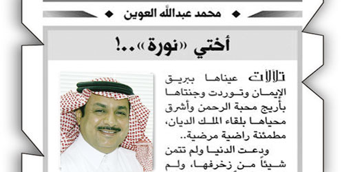 - نموذج لامرأة سعودية من رحم أرض الحرمين ومهبط الوحي ومثوى النبي الأكرم حيث القيم والشيم والطهر والوفاء رحمها الله رحمة واسعة. {إِنَّا لِلّهِ وَإِنَّا إِلَيْهِ رَاجِعونَ}.
