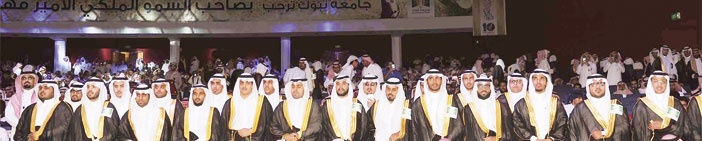 رعى صاحب السمو الملكي الأمير فهد بن سلطان بن عبدالعزيز أمير منطقة تبوك رئيس مجلس إدارة جمعية الملك عبدالعزيز الخيرية مساء أول أمس حفل تخريج الدفعة الثانية والعشرين «سلمان الحزم والعزم» لطلاب المرحلة الثانوية بمدارس الملك عبدالعزيز النموذجية لهذا العام 1437هـ، وذلك في قاعة الأمير فهد بن سلطان الثقافية بالمدارس. وأقيم حفل بهذه المناسبة والذي بدأ بآيات من القرآن الكريم ثم النشيد الوطني، بعد ذلك ألقيت كلمة الخريجين، ألقاها الطالب إبراهيم خالد إبراهيم الشريف، رحب فيها بسمو أمير منطقة تبوك وبأولياء الأمور والأمهات، وقال «إننا نسعد بوجود سموكم لرعاية حفلنا وفي يوم الحصاد بعد أن أمضينا سنوات في هذه المدارس منذ نعومة أظافرنا حتى أصبحنا اليوم مهيئين لمواصلة تعليمنا الجامعي في ظل ما وفرته حكومة خادم الحرمين الشريفين الملك سلمان بن عبدالعزيز وسمو ولي عهده وسمو ولي ولي العهد - حفظهم الله- من إمكانات وما شرعته من جامعات تجاوز عددها 30 جامعة منتشرة في ربوع الوطن», وأضاف قائلاً: سنظل بإذن الله على العهد باقين ولبلادنا مدافعين بكل ما نملك ونرخص لها الغالي والنفيس لندفع بوطننا إلى الأمام وفي مصاف الدول المتقدمة بالعلم. معرباً عن شكر وتقدير طلاب وطالبات المدارس لسمو أمير منطقة تبوك على دعمه ورعايته لمدارس الملك عبدالعزيز النموذجية حتى أصبحت اليوم مضرباً للمثل على مستوى مدارس المملكة. بعد ذلك قدم نشيد عن التحالف الإسلامي, ثم أدى الخريجون القسم، تلاه عرض رياضي قدمه طلاب المرحلة الابتدائية ثم نشيد عن جنودنا البواسل ثم مسيرة الخريجين والبالغ عددهم 127 طالباً, ثم قدمت لسمو أمير المنطقة هدية تذكارية قدمها المشرف العام على المدارس, بعد ذلك كرم سموه الطلاب المتميزين والمتفوقين ثم الطالبات المتميزات والمتفوقات واللاتي تسلم تكريمهن أولياء الأمور, ثم التقطت لسمو أمير المنطقة الصور التذكارية مع الخريجين.