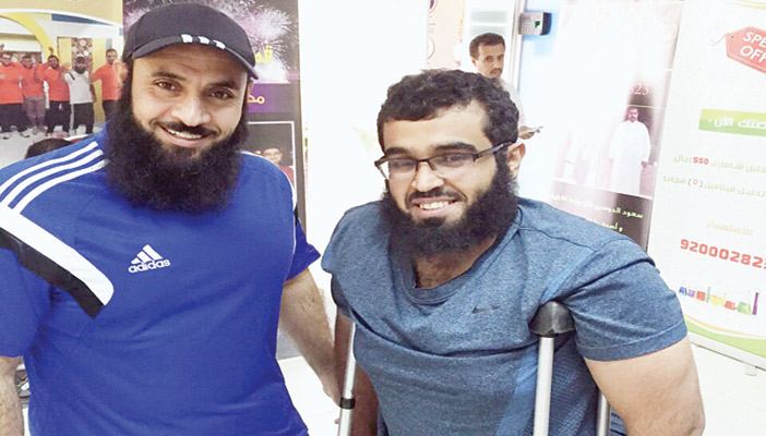 السيفي طلق بالثلاث كرسيه المتحرك، واستبدله بما هو خير منه، بـ «عكاز» يتكئ عليه، والتقط صور كثيرة له مع أخصائي التغذية العواد برفقة عكازه، بعد أن وصل وزنه اليوم 84 كيلو غرام.