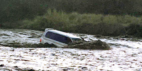 وأوضح المتحدث الرسمى لمديرية الدفاع المدني في منطقة جازان الرائد يحيى القحطاني أن مركز القيادة والتوجيه تبلغ مساء أمس الأول عن احتجاز مركبة وبها عائلة في مجرى وادي خلب بمنتزه العين الحارة وتم توجيه دوريات السلامة للموقع لإخراجهم من الوادي وتمكنت الدورية من إخراجها وسط تجمهر كبير من المتنزهين وبعد إخراجها احتجزت مركبة اخرى لأحد المتنزهين وأثناء محاولة إخراجها علقت مركبة الدفاع المدني في رمل رخو في الوادي وفجأة وصل سيل منقول من اليمن فوق المتوسط وجرف معه مركبة الدفاع المدني وخمس مركبات أخرى لمواطنين وبفضل الله لم يكن هناك أي خسائر في الأرواح وتم إخراج السيارات بعد انخفاض منسوب السيل.