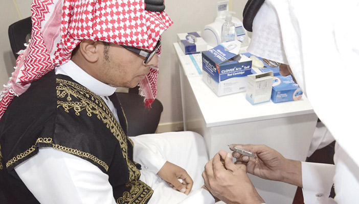 وذكر أنه وفقاً لنتائج المسح الصحي الوطني للمعلومات الصحية في المملكة العربية السعودية فإن معدل انتشار داء السكري بلغ (13.4%) منها (14.8%) عند الذكور، بينما بلغ (11.7%) عند الإناث، كما يرتفع المعدل مع التقدم بالعمر حيث بلغت نحو (7.8%) في الفئة العمرية (25-34) سنة، ليصل إلى (50.4%) في الفئة العمرية من 65 سنة فأكثر، وأوضحت الدراسة أن نسبة انتشار ما قبل الإصابة بداء السكري عند الذكور بلغ (17%) أي ما يعادل (1.29) مليون مصاب، وعند الإناث (15.5%) أي ما يعادل (1.1) مليون مصابة، كما يقدر عدد المصابين بداء السكري في المملكة بحسب الدراسة (1.1) مليون من الذكور، منهم 546 ألفًا يتناولون علاج لداء السكري، كما أن 275 ألفًا من الذكور المصابين بداء السكري لا يسيطرون على مرضهم، وأضافت الدراسة أن 775 ألفاً من الإناث مصابات بداء السكري منهن 356 ألفًا يتناولن العلاج، في حين أن هناك 196 ألفًا مصابة بداء السكري غير المسيطر عليه.