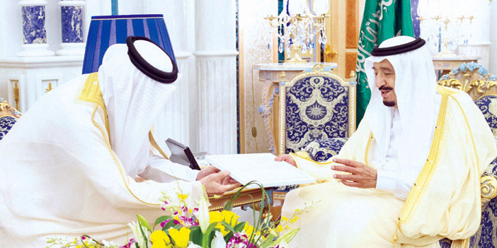 تسلم خادم الحرمين الشريفين الملك سلمان بن عبدالعزيز آل سعود ـ حفظه الله ـ رسالة من أخيه جلالة الملك حمد بن عيسى آل خليفة ملك مملكة البحرين الشقيقة.