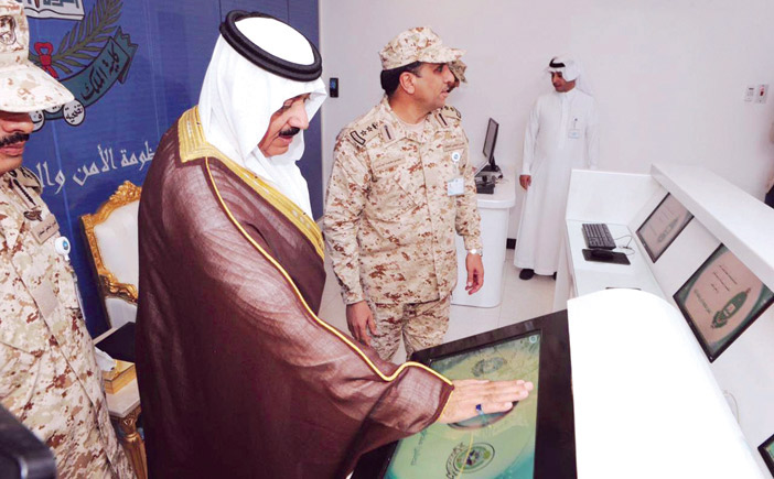 وتفقد سمو وزير الحرس الوطني المنظومة الآلية للأمن والسلامة بمرافق الكلية، واستمع لشرح مفصل عن النظام الأمني المتكامل وخصائصه المتعددة حيث يقوم بتحليل المعلومات الأمنية كما يشتمل النظام على غرف مراقبة مركزية ومراكز خوادم ذات شبكات مستقلة وكاميرات مراقبة تغطي جميع مرافق الكلية بالإضافة إلى المناطق المحيطة بها. بعدها انتقل سموه لقاعة الاجتماعات الكبرى حيث أقيم حفل خطابي بهذه المناسبة بتلاوة آيات من القرآن الكريم، ثم ألقى قائد كلية الملك خالد العسكرية المكلف كلمة رحب فيها بسمو الأمير متعب بن عبدالله، مثمناً ماتجده الكلية من دعم من سموه في جميع المجالات، مشيراً الى أن الكلية وعبر مسيرته التي دامت لأكثر من ثلاثة عقود تستشهد الجهود التي قام بها سمو الأمير متعب بن عبدالله لكونه أول قائد لها وهو من وضع لبنتها الأولى ويقف على تطويرها أولا بأول لتكون على المستوى الذي يتطلع له الجميع.