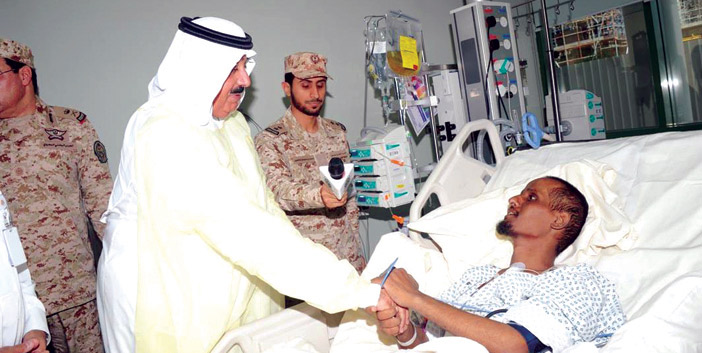 بعد ذلك تفقد سمو الأمير متعب بن عبدالله التوسعة والمنشآت الجديدة بساحة العرض واطلع على سير العمل فيها، ثم تناول سموه طعام الغداء مع طلبة الكلية. ومن جهة أخرى قام صاحب السمو الملكي الأمير متعب بن عبدالله بن عبدالعزيز وزير الحرس الوطني أمس بزيارة للمصاب الملازم أول مهندس عبدالله بن محمد الريثي من منسوبي قوات الحرس الوطني الذي يتلقى العلاج بمدينة الملك عبدالعزيز الطبية بالحرس الوطني بالرياض إثر تعرضه لإصابات مختلفة أثناء مهمة الدفاع عن الحدود الجنوبية بمنطقة نجران حيث كان في استقبال سموه عند وصوله مدير عام الشؤون الطبية في الشؤون الصحية بالحرس الوطني د. سعد المحرج. و نقل سموه تحيات وتقدير خادم الحرمين الشريفين - حفظه الله - واطمأن سموه على صحة المصاب، وتمنى له الشفاء العاجل، مشيداً بشجاعته وحرصه على مباشرة مهامه وأداء واجباته تجاه دينه ومليكه ووطنه على أكمل وجه، جنباً إلى جنب مع زملائه في القوات العسكرية والذين يتشرّفون جميعهم بالذود عن الوطن وحماية مقدساته ومكتسباته. من جهته عبّر المصاب عن شكره الجزيل لسمو الأمير متعب بن عبدالله لتواصله الدائم معه والسؤال عنه والوقوف على حالته وتلمس احتياجاته، مؤكدا أن إصابته هي وسام شرف وفخر وأن الدفاع عن الدين والوطن يستلزم بذل الغالي والنفيس من الجميع.