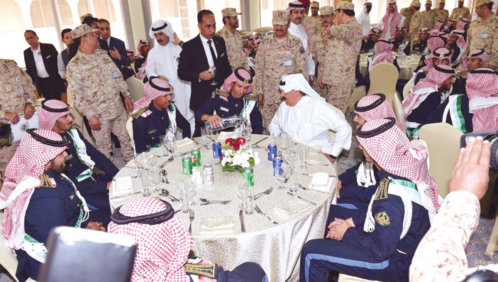 وأعرب سمو وزير الحرس الوطني عن سعادته بهذا التطور الذي تحققه كلية الملك خالد العسكرية في جميع المجالات مشيراً إلى اعتزازه بالفترة التي قضاها قائداً للكلية ولاسيما أثناء فترة النشأة والتأسيس معربا سموه عن سعادته بما تحقق حاليا من تحديث شامل لأنظمة التعليم والتدريب ولاسيما فيما يتعلق بالتعليم الالكتروني الذي أثبت جودة مخرجات الكلية على الصعيد العملي في قطاعات الحرس الوطني منوها سموه بكون جميع أعضاء هيئة التدريس بالكلية من السعوديين في مختلف التخصصات ومنهم مجموعة من الضباط الذين حصلوا على درجة الدكتوراه وساهموا مع زملائهم في إعداد مناهج الكلية وتطويرها لتواكب مستجدات العلم العسكري الحديث. ودعا سموه أبناءه الخريجين للتمسك بتعاليم الدين الإسلامي والتحلي بالأخلاق الكريمة، وأن يكونوا لبنة جديدة تضاف لما خرجته كلية الملك خالد العسكرية من دفعات متعاقبة طوال مسيرتها على مدى 31 عاماً، شكلت من خلالها رافداً قوياً ودعامة كبيرة لقوات الحرس الوطني، وساهمت بشكل فعال في مد قطاعاته ووحداته بالكفاءات المؤهلة التي أصبحت تتبوأ أعلى المراكز القيادية، ثم التقطت الصور التذكارية لسموه مع الطلبة الخريجين.
