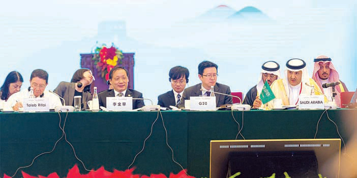 وشكر الأمين العام لمنظمة السياحة العالمية الصين على الاستضافة، وإسهاماتها في دعم السياحة خصوصاً وأن السياح الصينيين اليوم هم السوق الأكبر عالمياً والمصدر الأهم بـ120 مليون سائح سنوياً يخرجون من الصين إلى العالم، كما أنها رابع دولة استقطاباً للسياح حسب الإحصاءات العالمية، مشيرا إلى أنها أعلنت مؤخراً عن تبنيها للسياحة كمصدر مهم للاقتصاد ورافد لدخلها الوطني، ووسيلة لمعالجة الفقر وخلق الوظائف، وهو ما أكده رئيس الوزراء في افتتاح مؤتمر السياحة للتنمية المتزامن مع اجتماعات وزراء السياحة في دول العشرين الذي أعطى قاعدة إدارية بقوله إنهم في الحكومة وصلوا لقناعة «التعاطي بجدية مع صناعة السياحة إذا كانوا يرغبون في أن تسهم هذه الصناعة بجدية في التطوير والتنمية الاقتصادية والثقافية التي هي الصناعة الأقدر عليها». وأضاف أن أرقام السياحة تنمو عالمياً بشكل يؤكد إقبال البشرية عليها وأنها باتت حاجة أساس لهم، واهتمام الدول بها ووضوح الاستفادة منها اقتصادياً وتنموياً وثقافياً، فقد قفزت أرقام السياح حول العالم من 25 مليونا عام 1950 إلى1.2 (مليار ومائتي مليون سائح) عام 2015 وأشار إلى أن السياحة شهدت نموا وتنوعا ثابتا، حيث إنها أصبح أحد أكبر القطاعات وأكثرها دينامية ومرونة بين قطاعات اقتصاديات العالم. حيث يشكل القطاع 10% من الناتج المحلي الإجمالي في العالم، ما يعادل 7.6 تريليون دولار أمريكي، وزاد عدد السياح الدوليين من 25 مليون سائح عام 1950 إلى 1.1 مليار عام 2014، ثم 1.2 مليار عام 2015م، ويتوقع أن يصل العدد إلى 1.8 مليار سائح بحلول عام 2030. ويعادل سهم مصروفات السياحة المحلية حوالي 50% من دخل السياحة في اقتصاديات المجموعة العشرين، أي حوالي 80%في كثير من الأحوال. وناقشت اجتماعات الدورة إسهام السياحة في تحقيق الأهداف الإنمائية المستدامة، وتعزيز النمو الاقتصادي المستدام والشامل والتوظيف المكتمل والمنتج، ووضع وتنفيذ سياسات لتشجيع السياحة المستدامة التي تخلق فرص العمل وتعزز الثقافة المحلية ومنتجاتها بحلول عام 2030، وتفعيل إقرار قادة مجموعة العشرين في المكسيك عام 2012 بدور السياحة باعتبارها «وسيلة لخلق فرص العمل والنمو الاقتصادي والتنمية». كما ناقشت أعمال الدورة زيادة الفوائد الاقتصادية للدول الجزرية الصغيرة والدول الأقل نموا من الاستخدام المستدام للموارد البحرية بالإضافة إلى أهم التحديات التيواجه صانعي السياسات في دول العالم وفي مقدمتها نمو الاقتصادات المنخفضة، ومعدلات البطالة المرتفعة، فضلاً عن ارتفاع معدلات البطالة، حيث تتحدث منظمة العمل الدولية (ILO) عن حاجة ملحة لـ 45-50 مليون فرصة عمل جديدة سنويا على مدى السنوات العشر المقبلة لمجرد احتواء نمو الفئة العاملة حول العالم والحد من البطالة الناجمة عن الأزمة الاقتصادية. وشارك في اجتماعات هذه الدورة بالإضافة إلى وزراء السياحة في دول مجموعة العشرين عدد من المنظمات الدولية المتخصصة من بينها منظمة السياحة العالمية التابعة للأمم المتحدة. ومنظمة العمل الدولية، ومنظمة التعاون الاقتصادي والتنمية، ومجلس السفر والسياحة الدولي.