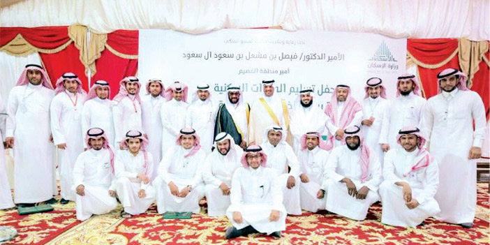 رعى صاحب السمو الملكي الأمير الدكتور فيصل بن مشعل بن سعود بن عبد العزيز أمير منطقة القصيم عصر يوم الأربعاء 18 من شهر شعبان، حفل تسليم الوحدات السكنية بمحافظة رياض الخبراء، الذي يقيمه فرع وزارة الإسكان بالمنطقة، وذلك في مقر الإسكان بالمحافظة.