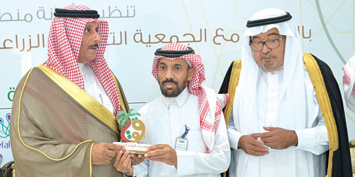 جاء ذلك عقب افتتاحه نيابة عن أمير منطقة القصيم مهرجان قوت للتمور المعبأة ومشتقاتها، الذي نظمته أمانة المنطقة بالتعاون مع جمعية البطين التعاونية، وذلك بمركز النخلة في مدينة التمور ببريدة، حيث تجوّل في أرجاء المعرض، واستمع لشرح من رئيس مجلس إدارة الجمعية الدكتور سعود الضحيان، عما يحتويه المعرض من أركان للمشاركين في تسويق التمور، ومشاركات الأسر المنتجة من مشغولات وحرف يدوية ومنتجات وأكلات شعبية، وشاهد عرض مرئي عن نشاطات الجمعية وما تقدمه ويقدمه المهرجان من خدمات للمستهلك ومنتجي ومزارعي التمور في المنطقة، كما كرم الرعاة والداعمين والمشاركين في فعاليات المهرجان، فيما حصلت (الجزيرة) على تكريم بهذه المناسبة، وتسلم الحميدان درعاً تذكارياً من رئيس الجمعية.