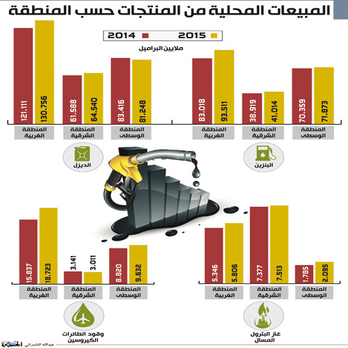 وعلى صعيد أنواع المنتجات المكررة، بينت الشركة أن كل من الديزل وزيت الوقود والبنزين يشكل 78 % من إجمالي منتجات المصافي خلال 2015 بنحو 498 مليون برميل، حيث سجلت كل المنتجات الرئيسية المصنعة في المصافي المحلية ارتفاعاً خلال 2015 مقارنة بالعام الذي سبقه باستثناء زيت الوقود.