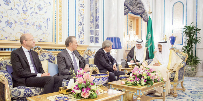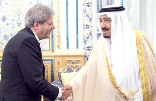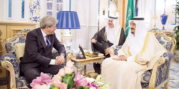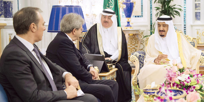 من ناحية أخرى استقبل خادم الحرمين الشريفين الملك سلمان بن عبدالعزيز آل سعود -حفظه الله- في مكتبه بقصر السلام أمس، معالي وزير الخارجية والتعاون الدولي بجمهورية إيطاليا باولو جينتلوني. ونقل معاليه لخادم الحرمين الشريفين تحيات فخامة رئيس جمهورية إيطاليا سيرجيو ماتاريلا، ودولة رئيس الوزراء ماتيو رينزي؛ فيما أبدى الملك المفدى تحياته لهما.. عقب ذلك تم بحث العلاقات الثنائية بين البلدين وسبل تنميتها وتعزيزها في مختلف المجالات، إضافة إلى استعرض تطورات الأحداث الإقليمية والدولية.