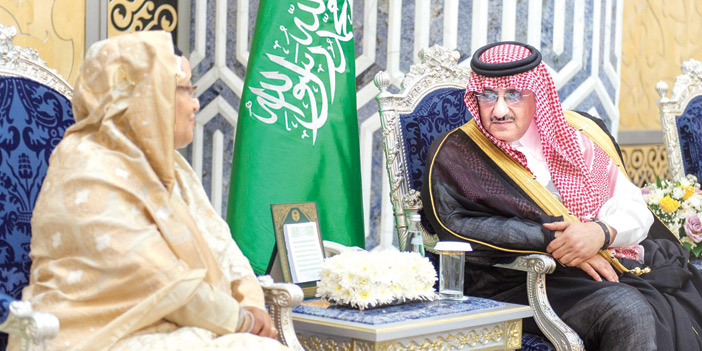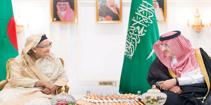 ثم صحِب سمو ولي العهد دولة رئيسة الوزراء البنجلاديشة حسينة واجد إلى صالة التشريفات حيث صافحت دولتها صاحب السمو الملكي الأمير الدكتور عبدالعزيز بن سطام بن عبدالعزيز مستشار خادم الحرمين الشريفين، وصاحب السمو الملكي الأمير