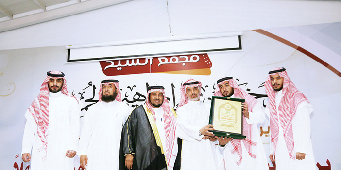 ثم بعد ذلك تم تكريم خمسة طلاب ممن حفظوا كتاب الله كاملاً، و4 طلاب حفظوا 15 جزءًا، وتكريم المعلمين والمتعاونين مع مكتب الإشراف، وتكريم المتبرعين بالأراضي والمتعاونين في إنشاء هذا المجمع.
