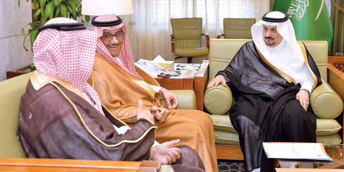 كما استقبل صاحب السمو الملكي الأمير فيصل بن بندر بن عبدالعزيز أمير منطقة الرياض في مكتبه بقصر الحكم امس, معالي مدير جامعة الملك سعود الدكتور بدران بن عبدالرحمن العمر يرافقه أمين عام المركز الوطني لأبحاث الشباب في الجامعة الدكتور عبدالله الجاسر. وجرى خلال الاستقبال مناقشة تأسيس لجنة شباب منطقة الرياض الاستشارية التي أقرها مجلس منطقة الرياض في اجتماعه الأخير المنعقد في 25 رجب 1437.