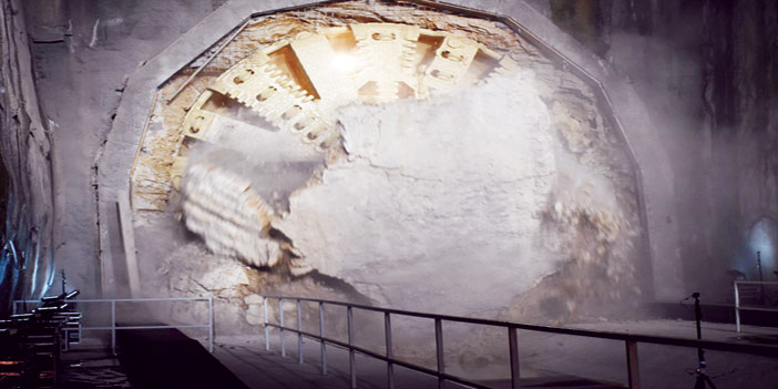 عقب ذلك، شاهد سمو الأمير والحضور آلة حفر الأنفاق العملاقة «سنعة» وهي تخترق جدار محطتها الأخيرة على الخط الأخضر، بعد أن أنجزت مهمتها بحمد الله في أقل من عام واحد، بحفر الجزء الشمالي من نفق الخط الأخضر بطول 4880 متراً، ابتداء من التقاء الخط الأخضر بالخط الأحمر (محور طريق الملك عبدالله) بجوار مقر وزارة التربية والتعليم، وصولاً إلى المحطة المجاورة لدوار قاعدة الملك سلمان الجوية.