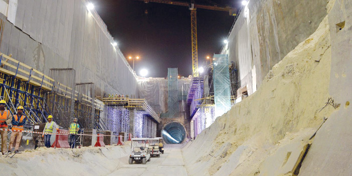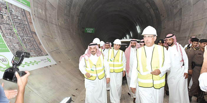 سمو الأمير فيصل بن بندر حرص على النزول لأرضية النفق التي يبلغ عمقها «25» متراً تحت الأرض ثم شاهد فيلماً ومواكبة المشروع من خلال 200 موقع.