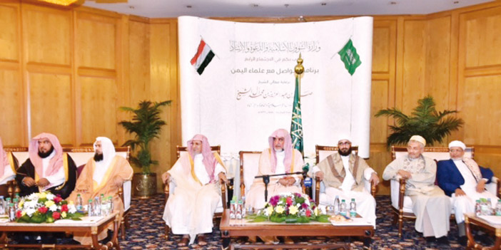 رأس وزير الشؤون الإسلامية والدعوة والإرشاد الشيخ صالح بن عبدالعزيز آل الشيخ الاجتماع الرابع لـ(برنامج التواصل مع علماء اليمن)، الذي عقد بفندق مكارم أجياد بمكة المكرمة.. وشهد الحفل عضو هيئة كبار العلماء عضو اللجنة الدائمة للإفتاء إمام وخطيب المسجد الحرام رئيس مجمع الفقه الإسلامي الدولي الشيخ الدكتور صالح بن عبدالله بن حميد، ورئيس محاكم منطقة مكة المكرمة الشيخ سليمان بن عبدالرحمن الثنيان، إضافة إلى عدد من أصحاب الفضيلة العلماء، والمشايخ من المملكة، ومن الجمهورية اليمنية، تجاوز عددهم (140) عالماً يمثلون جميع الاتجاهات السياسية، والمذهبية، والعلمية في مختلف مناطق ومدن ومحافظات اليمن.