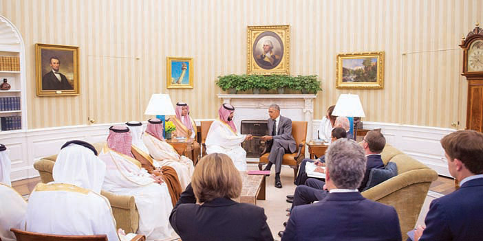 وعبّر الرئيس الأمريكي عن التزام الولايات المتحدة الأمريكية بمواصلة التعاون مع المملكة لما فيه مصلحة البلدين، والعمل مع المملكة لدعم أمن واستقرار منطقة الشرق الأوسط، والتحديات التي تواجهها المنطقة. وتم التطرق خلال الاستقبال إلى الرؤية الاقتصادية والتنموية للمملكة، حيث أكد الرئيس باراك أوباما ترحيب الولايات المتحدة الأمريكية برؤية المملكة العربية السعودية 2030 والبرامج الاقتصادية التي تشهدها السعودية، وتعزيز التعاون معها في خططها المستقبلية.