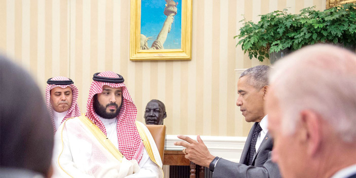 استقبل فخامة الرئيس الأمريكي باراك أوباما أمس في البيت الأبيض صاحب السمو الملكي الأمير محمد بن سلمان بن عبد العزيز ولي ولي العهد النائب الثاني لرئيس مجلس الوزراء وزير الدفاع. ونقل سمو ولي ولي العهد لفخامته تحيات وتقدير خادم الحرمين الشريفين الملك سلمان بن عبد العزيز آل سعود - حفظه الله - كما حمّله فخامته تحياته وتقديره لخادم الحرمين الشريفين. وبحثا خلال الاستقبال العلاقات الثنائية التاريخية المتميزة بين البلدين.