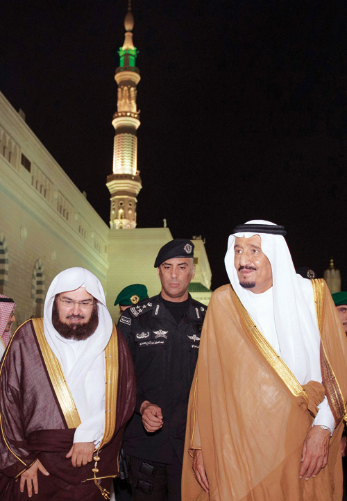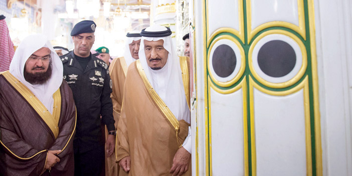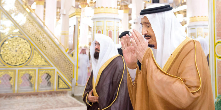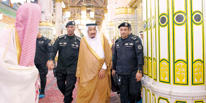 زار خادم الحرمين الشريفين الملك سلمان بن عبدالعزيز آل سعود المسجد النبوي، حيث كان في استقباله - حفظه الله - عند باب الحرم النبوي معالي الرئيس العام لشؤون المسجد الحرام والمسجد النبوي الشيخ الدكتور عبدالرحمن بن عبدالعزيز السديس، ومعالي نائب الرئيس العام لشؤون المسجد النبوي الشيخ عبدالعزيز الفالح، وأئمة المسجد النبوي ومسؤولو الرئاسة. ثم أدى خادم الحرمين الشريفين، وسمو ولي العهد، وأصحاب السمو الأمراء الصلاة في الروضة الشريفة. كما تشرف خادم الحرمين الشريفين - رعاه الله - بالسلام على رسول الله صلى الله عليه وسلم، وعلى صاحبيه رضوان الله عليهما. بعد ذلك تسلم الملك المفدى هديتين عبارة عن نسخة نادرة من المصحف الشريف، وكتاب عن مكتبة المسجد النبوي الشريف.