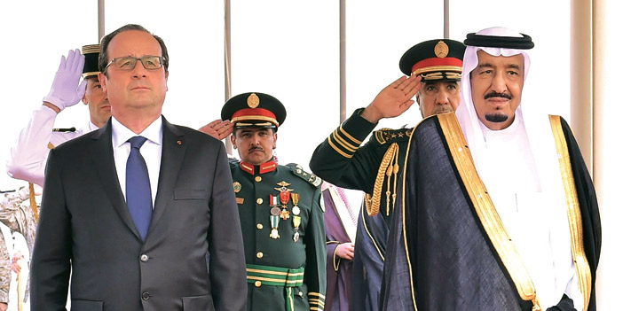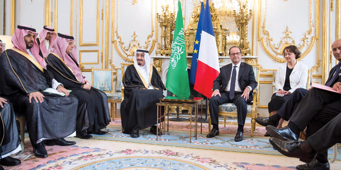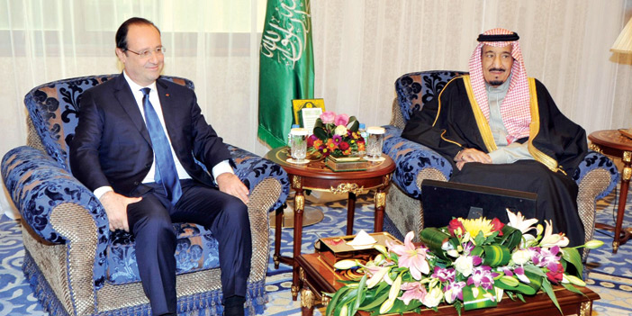 وفي 16 رجب 1436 هـ الموافق 05 مايو 2015 م قام فخامة الرئيس فرانسوا هولاند رئيس الجمهورية الفرنسية بزيارة للمملكة العربية السعودية وصفها فخامته حينها بأنها اكتسبت طابعًا استثنائيًا من كل الجوانب، في ظل الظروف والأحداث التي تمر بها المنطقة، مشيرًا إلى أن المنطقة منذ فترة تشهد نزاعات تزعزع استقرارها وأمنها، كما يحدث في سوريا وفي العراق وما يحدثه تنظيم داعش والقاعدة من عمليات إرهابية فيهما، بالإضافة إلى ما يحصل في اليمن، وتدخل الدول التي استجابت لنداء ومناشدة رئيس الجمهورية اليمنية عبدربه منصور هادي نظرًا للوضع المأساوي الذي آلت إليه بلاده «اليمن».