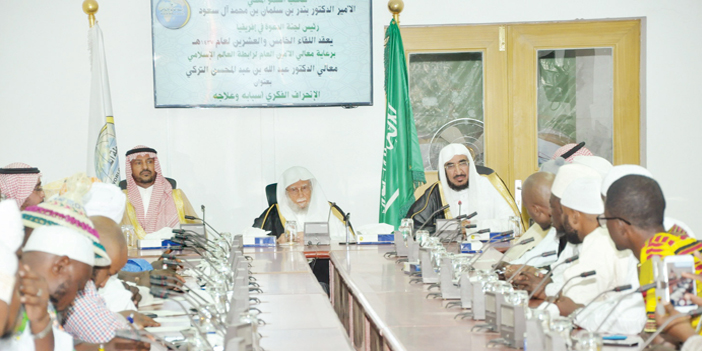 وقال الدكتور التركي في كلمته التي القاها خلال لقائه امس عدداً من دعاة قارة إفريقيا المشاركين في الملتقى الخامس والعشرين للجنة الدعوة في إفريقيا بحضور الأمير الدكتور بندر بن سلمان بن محمد رئيس لجنة الدعوة في أفريقيا، وأعضاء اللجنة، قال ان ما تتعرض له القارة الإفريقية كسائر دول الإسلام من محن وحملات منظمة الهدف كإقصاء المسلمين فيها وإبعادهم عن دينهم وتشكيكهم فيه والطعن فيه، داعياً الجميع التعاون والتناصح واستشارة البعض حتى لا يتمكن الأعداء من المسلمين، وأن ما وقع ويحدث في إفريقيا وفي غيرها من قتل للمسلمين لابد أن ينظر فيه ومعرفة الأسباب والدواعي التي أدت له وتشخيص العلاج لمكافحة العدوان, وأن يتم إيجاد الحلول لعل الله أن يوفق الجميع لقبولها، فالأمة إذا تركت الأمر على ما هو عليه أهلك الأعداء المسلمين وقضوا عليهم، ولكن إن كان هناك وعي وانتباه ويقظة استطاعوا أن يخلصوا شعوبهم من هذه الضلالات وهذه الأباطيل واستطاعوا توحيد الصف وجمع الكلمة على الخير والهدى.