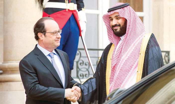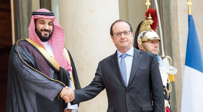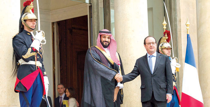 استقبل فخامة الرئيس فرانسوا هولاند، رئيس الجمهورية الفرنسية، في قصر الإليزيه أمس، صاحب السمو الملكي الأمير محمد بن سلمان بن عبدالعزيز آل سعود ولي ولي العهد، النائب الثاني لرئيس مجلس الوزراء وزير الدفاع.