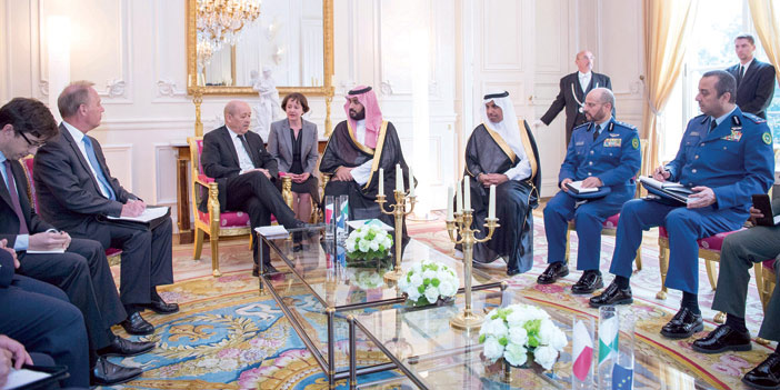 التقى صاحب السمو الملكي الأمير محمد بن سلمان بن عبدالعزيز ولي ولي العهد النائب الثاني لرئيس مجلس الوزراء وزير الدفاع أمس معالي وزير الدفاع الفرنسي جان إيف لودريان، وذلك في مقر وزارة الدفاع في العاصمة الفرنسية باريس.