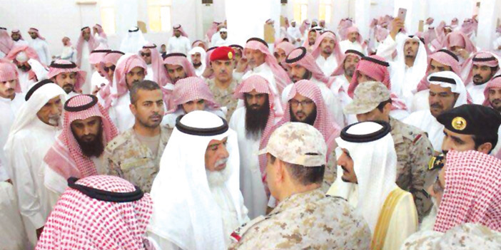 وشارك في الصلاة على الشهيد قادة وضباط المنطقة الشمالية ومديري الإدارات الحكومية وجموع غفيرة من أبناء المحافظة.