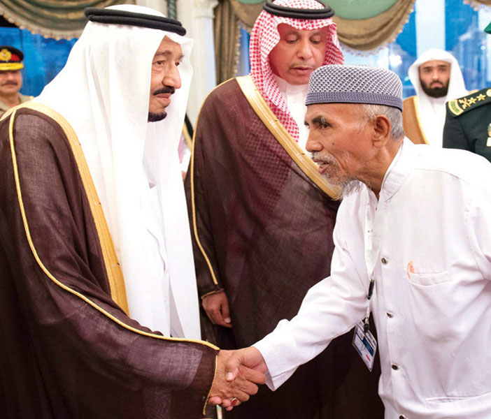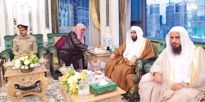 واستقبل الملك المفدى معالي وزير الحج والعمرة الدكتور محمد بن صالح بنتن، ووكلاء الوزارة ورؤساء المؤسسات الأهلية لأرباب الطوافة والأدلاء والوكلاء والزمازمة والنقابة العامة للسيارات.
