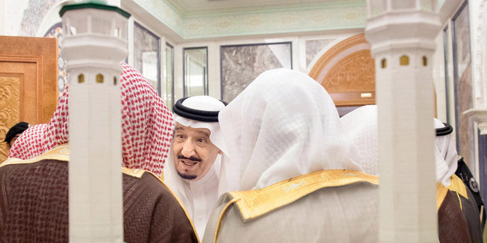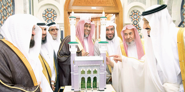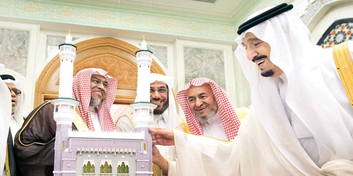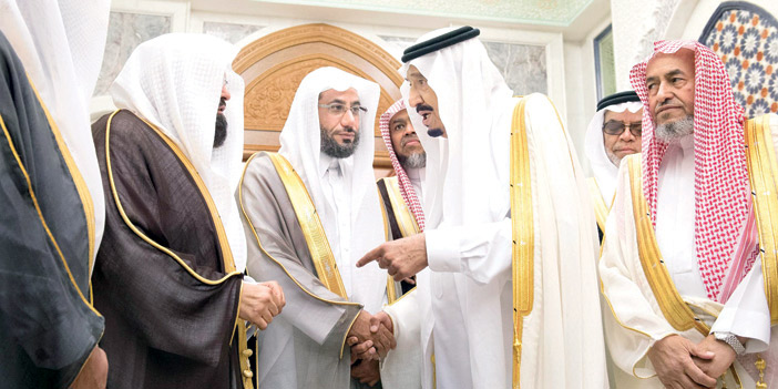 استقبل خادم الحرمين الشريفين الملك سلمان بن عبد العزيز آل سعود - حفظه الله - أمس في قصر الصفا بمكة المكرمة، معالي الرئيس العام لشؤون المسجد الحرام والمسجد النبوي الشيخ الدكتور عبدالرحمن بن عبد العزيز السديس، ومعالي نائب الرئيس العام لشؤون المسجد الحرام الشيخ الدكتور محمد بن ناصر الخزيم، ومؤذني المسجد الحرام. وقد تسلم خادم الحرمين الشريفين - رعاه الله - هدية تذكارية من الرئاسة العامة لشؤون المسجد الحرام والمسجد النبوي، ثم التقطت الصور التذكارية بهذه المناسبة.