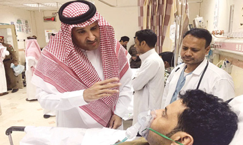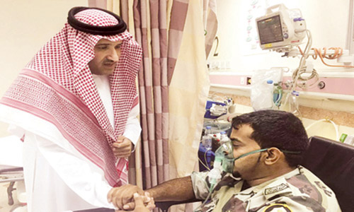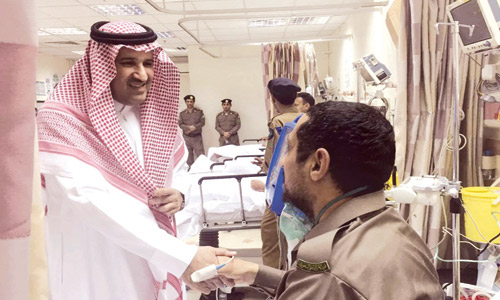 ورفع سمو أمير منطقة المدينة المنورة أحر التعازي والمواساة لأسر وذوي الشهداء، سائلا الله أن يتغمدهم برحمته وغفرانه، وأن يمن على المصابين بالشفاء، وأن يديم على بلادنا أمنها واستقرارها وأن يرد كيد الكائدين في نحورهم. وقام سمو الأمير فيصل بن سلمان بن عبد العزيز بزيارة لرجال الأمن المصابين جراء حادث التفجير الإرهابي، واطمأن على صحتهم، مؤكِّداً سموه على تقديم أفضل سبل الرعاية الطبية والعلاجية لهم، مثمناً جهود الأطباء والعاملين في مستشفي الأنصار لما قدموه من عناية ورعاية للمصابين في الحادث، متمنيّاً الشفاء العاجل للمصابين والرحمة والغفران للشهداء.